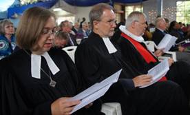 A Procession for the Church Service included pastors, congregants and