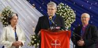 The Presiding Bishop opening the exhibition. Left is