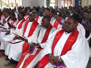 The Presiding Bishop Dr Malasusa assisted by Bishop