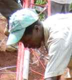 Macha, the welder started immeadetly to dig the hole for the foundation of the antenna mast, while Temba and Martin headed down again to buy more Sand and cement. They had to go another time, until there had been enough material on place to plaster the hut, and cement the antenna mast.