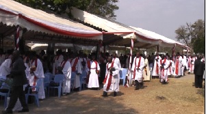 Maaskofu wanasubiri maandamano ya Wachungaji wafike eneo la ibada