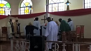 Msaidizi wa Askofu Mchungaji Elingaya Saria akihubiri Wakati wa Ibada kanisani.