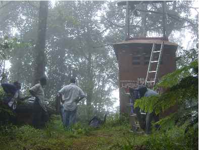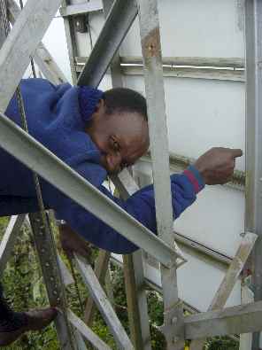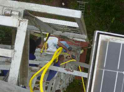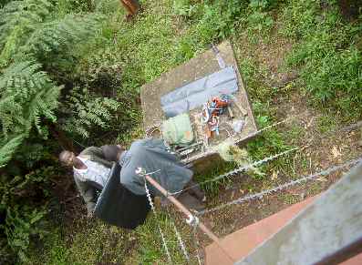 Early on Sunday morning September 5th every one heard just a big hiss when tuning the station. The studio staff tried to phone the watchmen to ask what happened at the transmitter side. But no one had a telephone number. Since they did not receive any news from the watchmen as well, it was decided to drive up in the rain forest on Mondey morning.