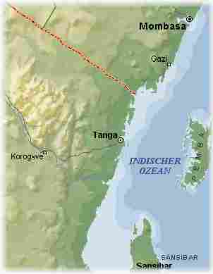 We found the highest population density is around Mlalo. There is also public electricity available. So we looked for a suitable high location, and found the Seguruma mountain (7279ft.) just above Mlalo. From there we had excellent view towards Mombasa and all the coastal line towards Tanga. We placed a small beacon transmitter on a tree to verify the possible range from there. This transmitter could be heard nearly all the road along the Usambara mountains coming from Moshi through Korogwe up to Tanga, except some segment, which is being blocked by the mountains of Amani. Around Mombo the signal was also weak. We found a strong signal even in downtown Tanga and the road leading South to Pangani, about 100 km away from the 1-Watt beacon!