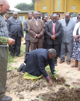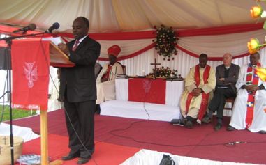 Mr. Brighton Killewa (above), the ELCT Secretary General read a special message from the ELCT Presiding Bishop Dr. Alex Gehaz Malasusa to mark the kick off that entailed the launching of the book, unveiling of a plaque and blessing a tower at Mshikamano Vocational Training Centre and planting of a tree at Tumaini University Makumira.